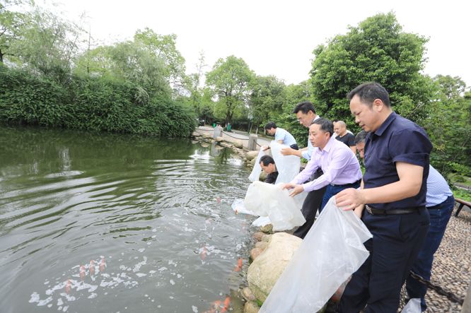 学校开展“清湖养鱼•水净鱼欢”放养生态景观鱼活动