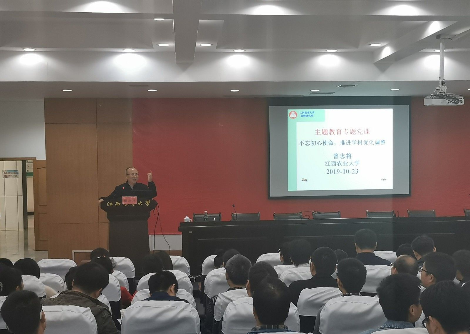 10月23日下午,副校长曾志将在校办一楼报告厅以《不忘初心使命,推进学科优化调整》为题,为分管单位的领导干部及党员上了一堂生动的“不忘初心、牢记使命”主题教育专题党课。曾志将结合自身学习体会,与大家分享了...