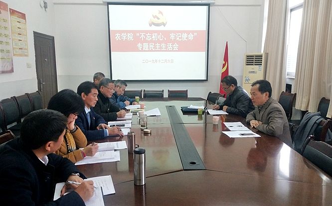 12月6日,农学院党委领导班子召开“不忘初心、牢记使命”专题民主生活会,副校长许斌华出席指导,学校“不忘初心、牢记使命”主题教育第二督导组组长殷青参加了会议,会议由学院党委书记方加海主持,学院党委领导班子...