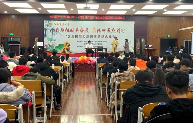 12月15日晚,由学校纪委、团委主办,青年廉洁社承办的2019年“我与祖国共奋进,廉洁中国在前行”12•9国际反腐败日晚会暨廉洁情景剧决赛汇演在大学生活动中心举行。校纪委书记乔金霞、纪委副书记黎敏出席,350余名师...