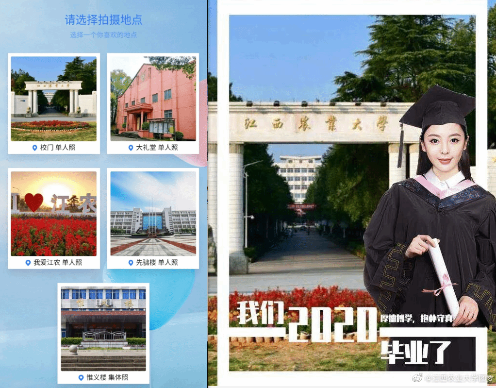 校门“合影”、先骕楼外“打卡”、 校大礼堂“留念”……欧冠2020届毕业生在“全国各地”同时上线毕业照打卡,刷爆了江农师生和校友的朋友圈。据了解,这是全国首个H5版本的“AI云毕业照”,受到广泛关注,被中国青年...