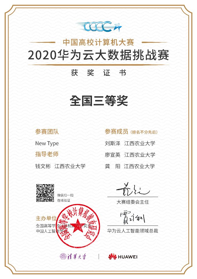 近日,第五届(2020年)“中国高校计算机大赛”落下帷幕,欧冠软件学院18级软件工程专业大数据方向学生刘斯泽、廖宣英、龚阳组成的“New Type”团队在指导老师钱文彬博士的带领下,代表学校参赛并取得该赛事大数据挑...