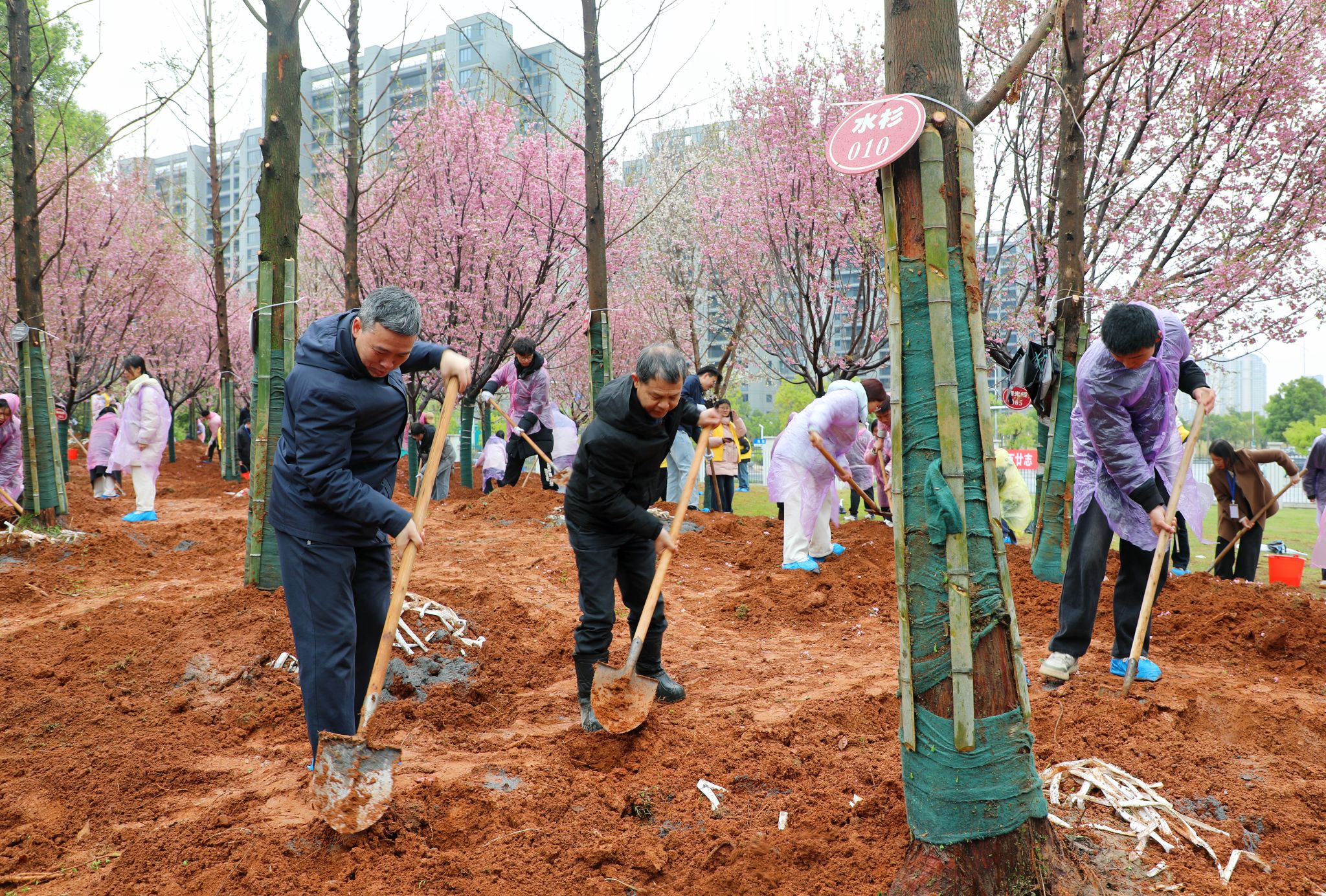 百廿芳华,树木树人。为深入贯彻落实习近平生态文明思想,打造宜学宜教宜研美丽校园,喜迎学校120周年校庆,3月30日上午,学校举行“百廿校庆纪念林”植树活动。校党委书记黄路生院士、副校长曾勇军,相关部门负责人、校友代表及师生代表共同参加此次活动。